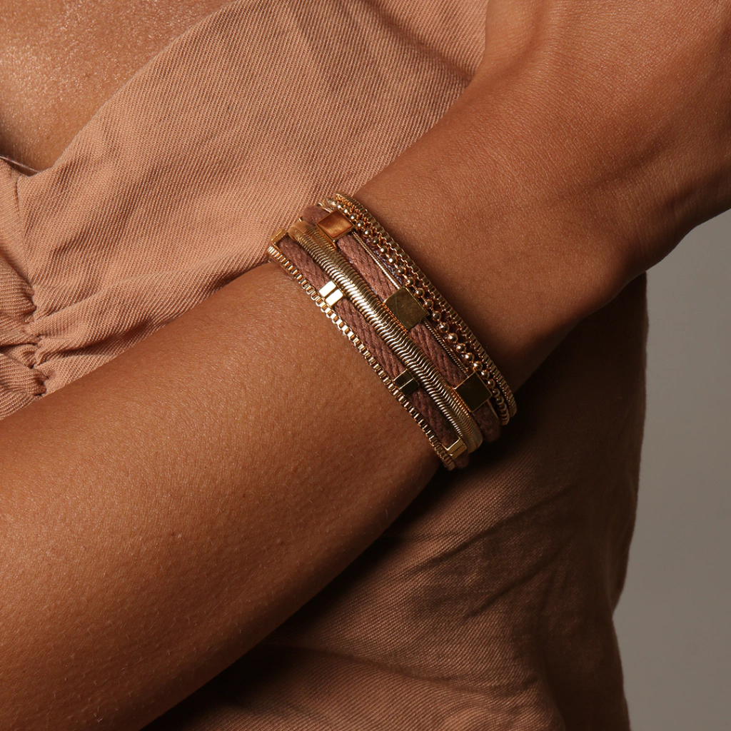 Bracelete com mix de materiais. Fecho de ímã personalizável.