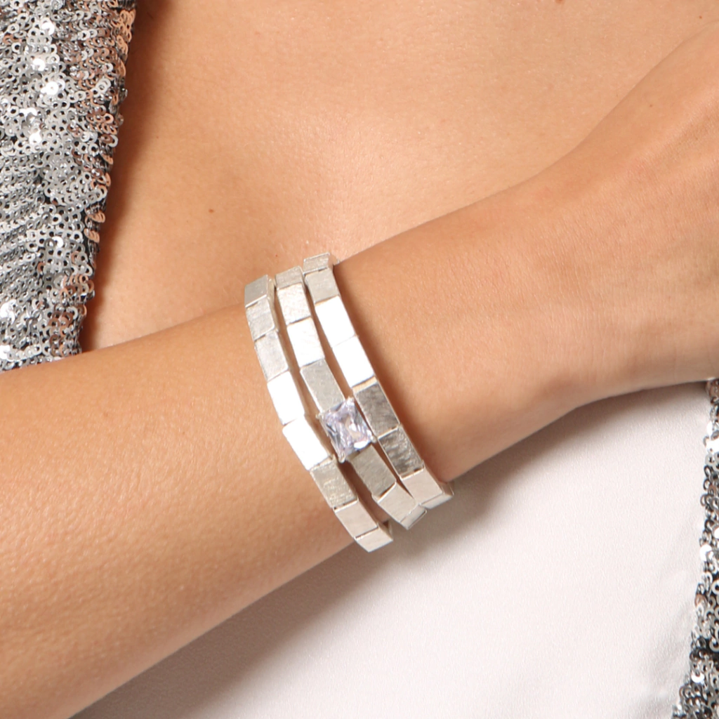 Uma pulseira moderna e sofisticada com fecho de ímã. Essa pulseira compões nossa Linha Festa.